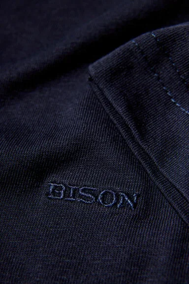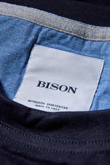 Lækker Bison T-shirt i god, tyk kvalitet. T-shirten er enten ensfarvet eller meleret. Det enkle design med rund hals og et meget diskret Bison-logo på venstre side af brystet, gør at T-shirten nemt kan bruges både alene samt under en trøje, cardigan eller blazer.